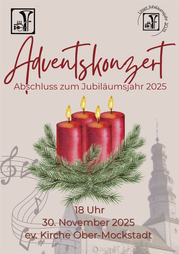 Mit dem diesjährigen Adventskonzert am Sonntag, den 30. November um 18 Uhr in der ev. Kirche Ober-Mockstadt endet die musikalische Veranstaltungsreihe anlässlich unseres 125-jährigen Bestehens.