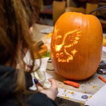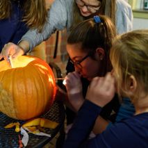 Die Kürbisse werden seit vielen Jahren bei der Familie Dorothee Meub bearbeitet. Zu den Arbeiten gehören unter anderem das Aushöhlen der Kürbisse, Motive aussuchen und das ausgesuchte Motiv auf den Kürbis übertragen. Das Angebot des Musikvereins wurde wieder von vielen Jugendlichen des Jugendorchesters angenommen. Das Kürbisschnitzen bietet den Teilnehmern viel Spaß und Freude an der handwerklich orientierten Beschäftigung. Auch für das leibliche Wohl war wieder bestens gesorgt. Es gab zahlreiche Erfrischungsgetränke sowie Kaffee und Kuchen. Zum Abschluss wurde gemeinsam Pizza gegessen.