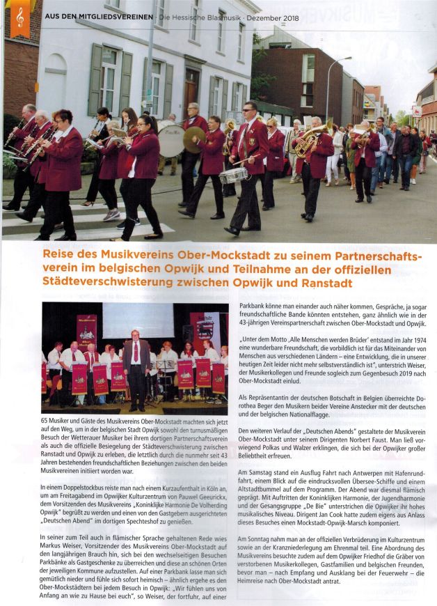 Seit über 40 Jahren verbindet den Musikverein Ober-Mockstadt und die Königliche Harmonie de Volherding aus Opwijk in Belgien eine enge musikalische Freundschaft.