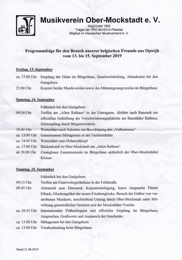 Programm für unsere Besucher aus Opwijk (E-03-2019-01)