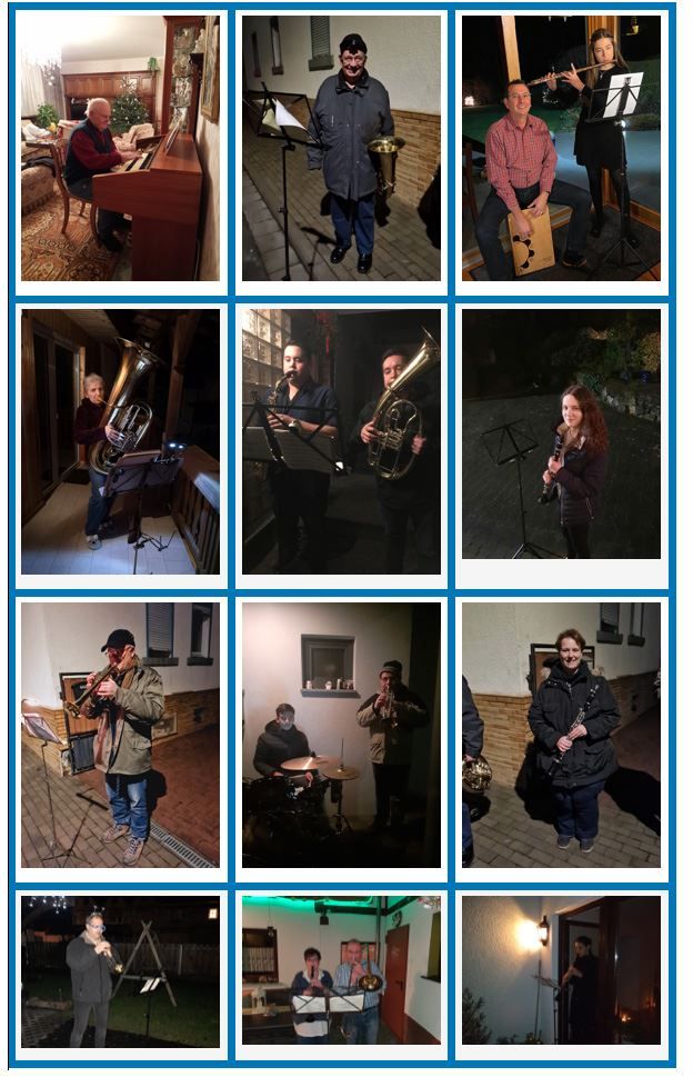 Doch der Verein hat es sich nicht nehmen lassen den Jahresanfang musikalisch zu begleiten. Jeder für sich, auf Abstand und coronagerecht spielten die Instrumente in den Höfen und vor den Häusern der Musiker und Musikerinnen auf und wünschten somit allen Freunden der Musik ein gesundes, friedliches und schönes Jahr 2021!