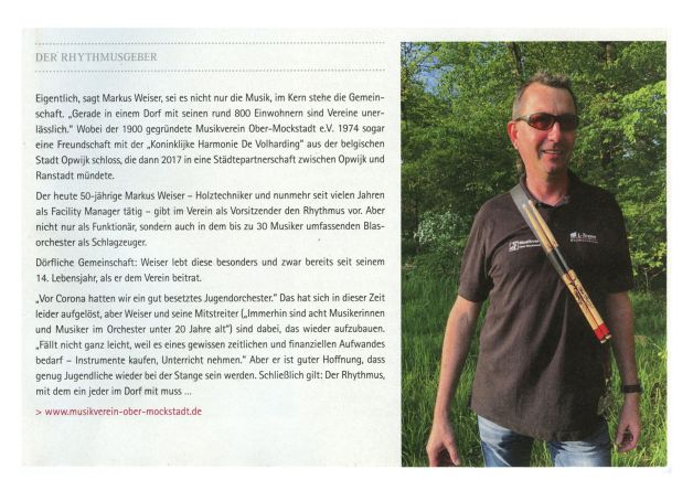Der Musikverein beteiligte sich an den Feierlichkeiten zum 50-jährigen Bestehen der Großgemeinde Ranstadt. Gemeinsam mit der Bürgermeisterin, Mitgliedern des Gemeindeparlaments und Ortsbeirats, Abordnungen der örtlichen Vereine von Ober-Mockstadt sowie Bürgerinnen und Bürgern fand ein Rundgang durch Ober-Mockstadt statt. Hierbei wurde ein neues Schild am Lehrbiotop der Naturfreunde enthüllt, sowie an der ehemaligen Viehwaage eine Wasserentnahmestelle eingeweiht. Abgeschlossen wurde der Rundgang mit einem Imbiss am "Alten Rathaus".